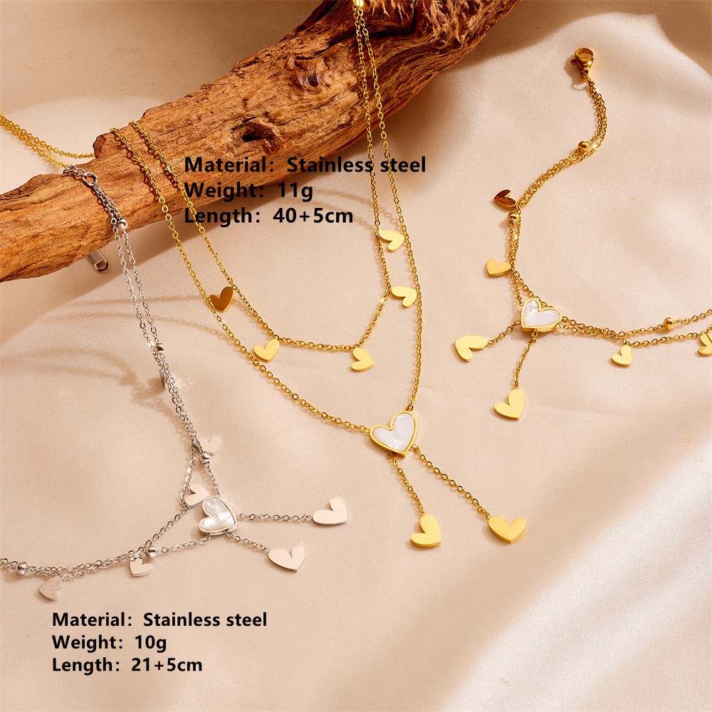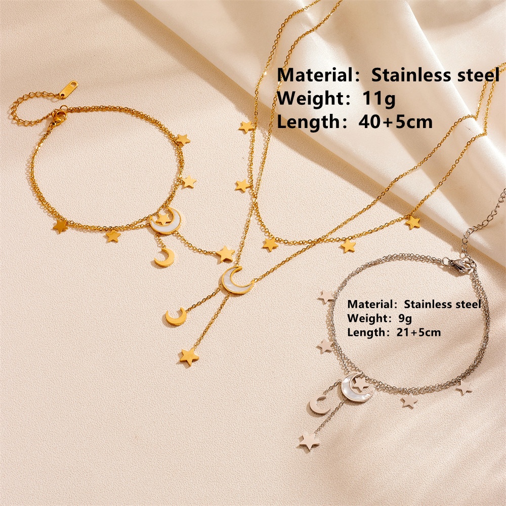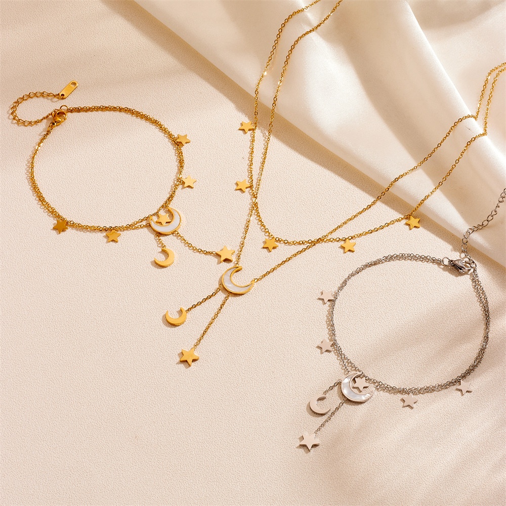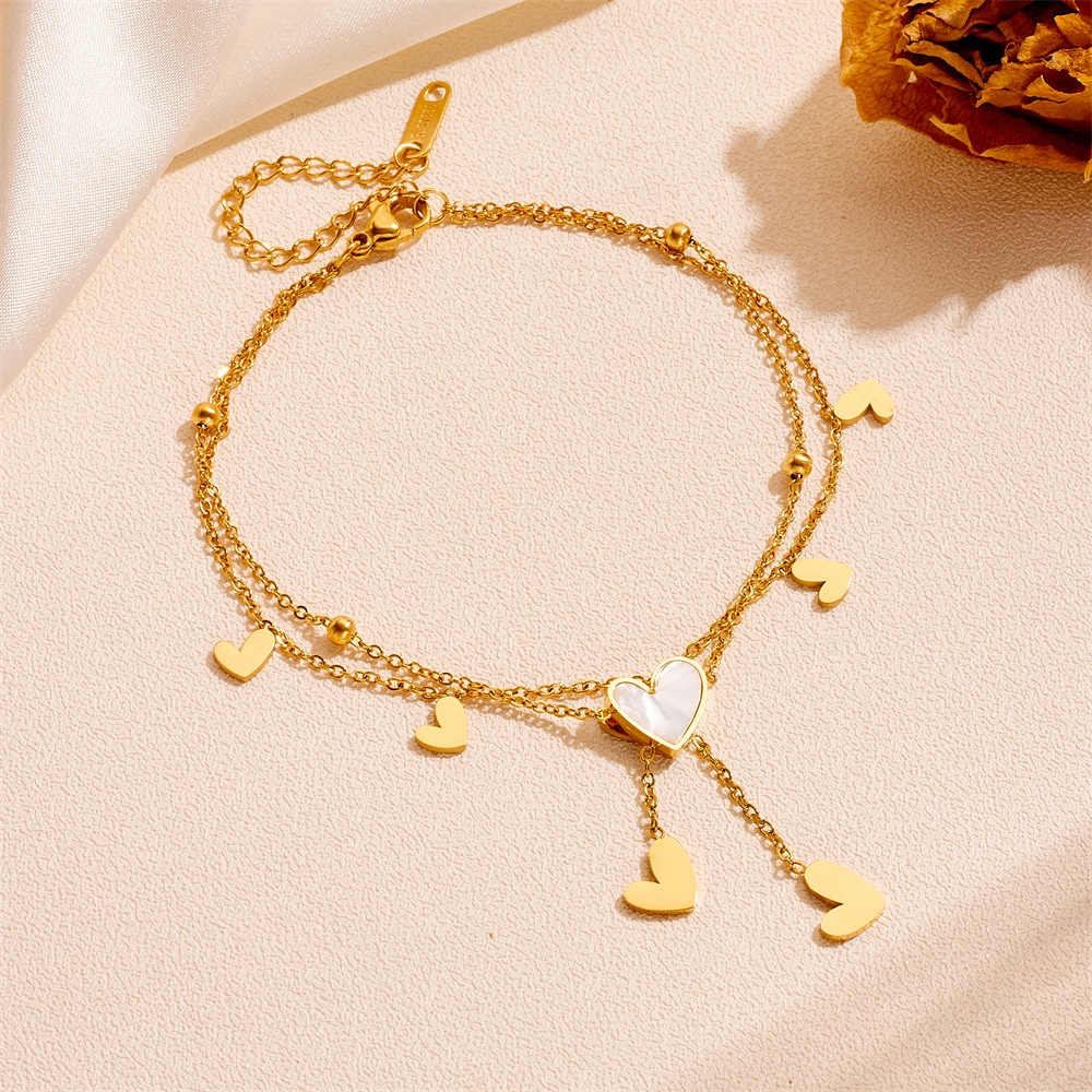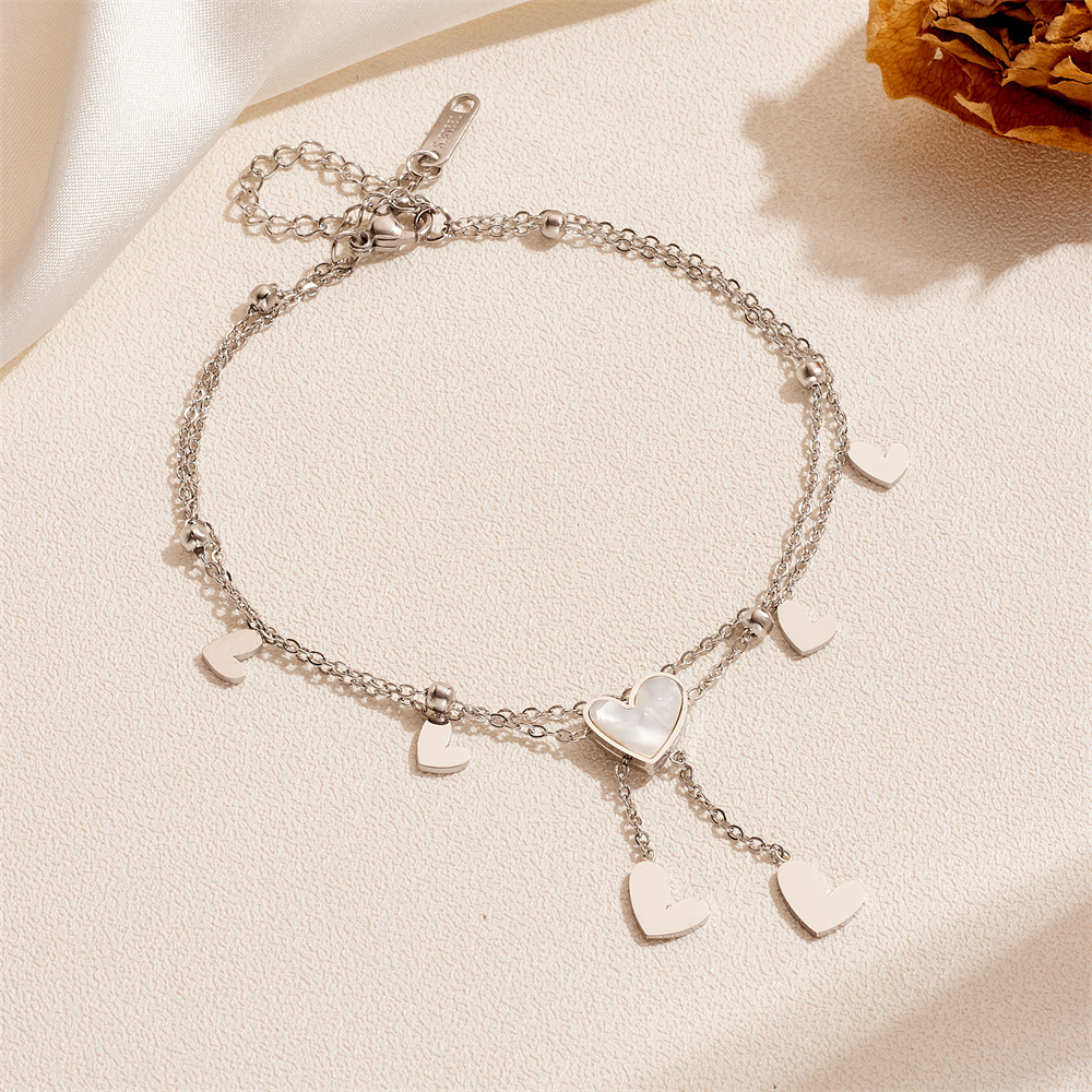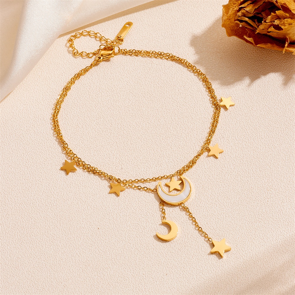 Cute Heart Star Moon Tassel Anklet Stainless Steel
