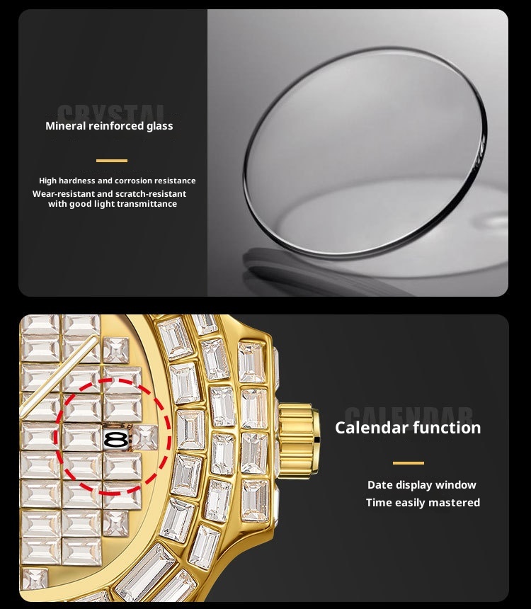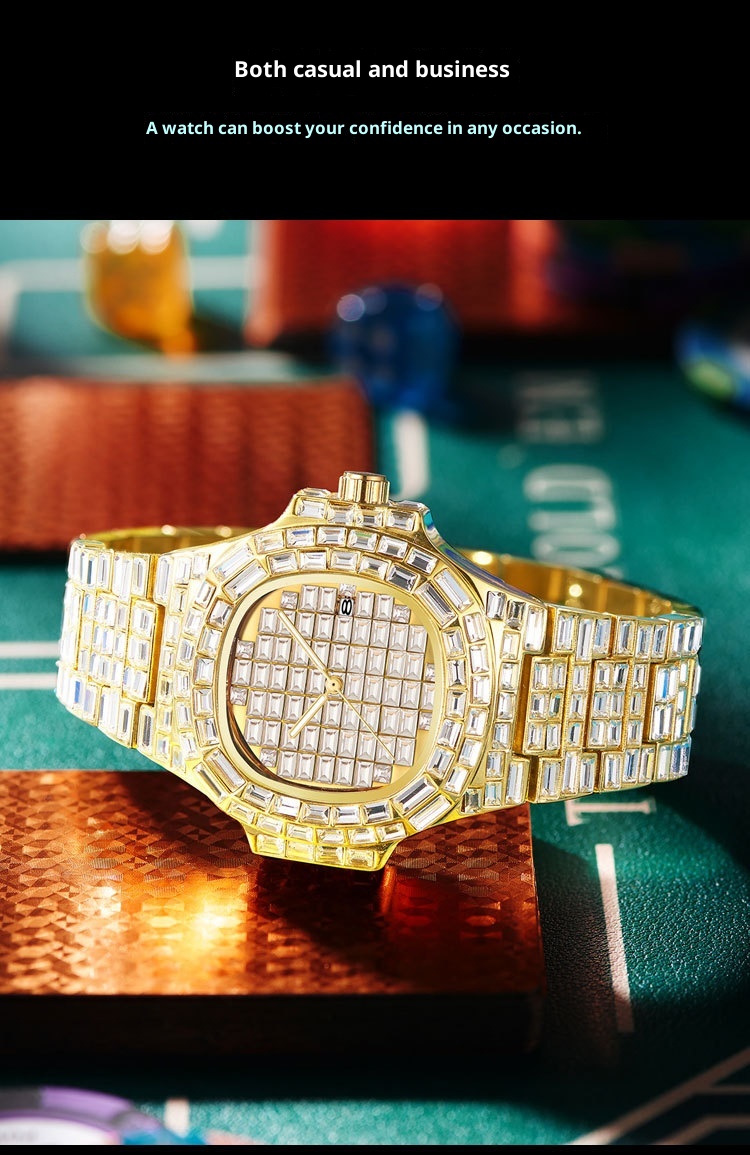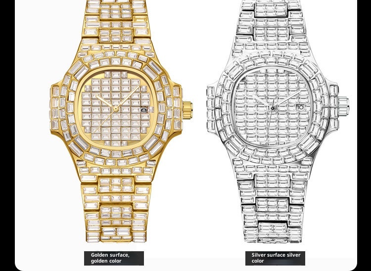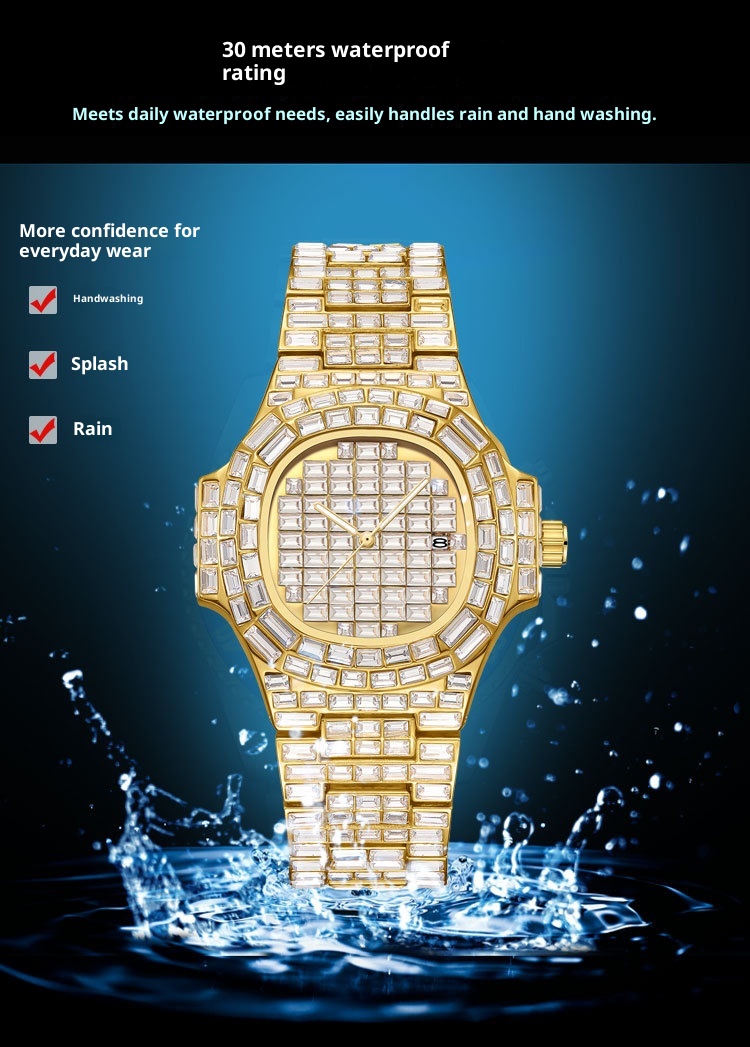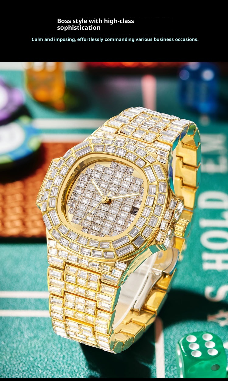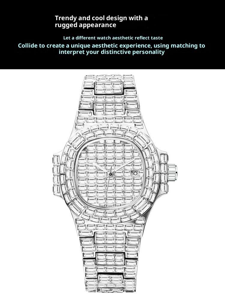 Full Square Diamond Casual Trend Waterproof Calendar Quartz Watch