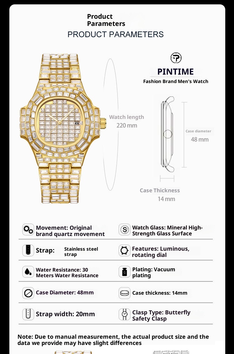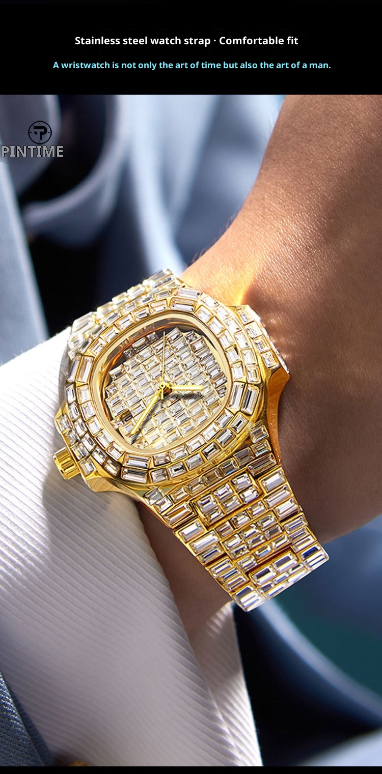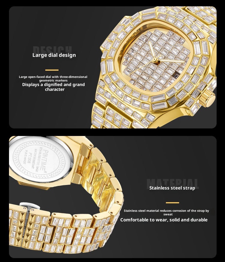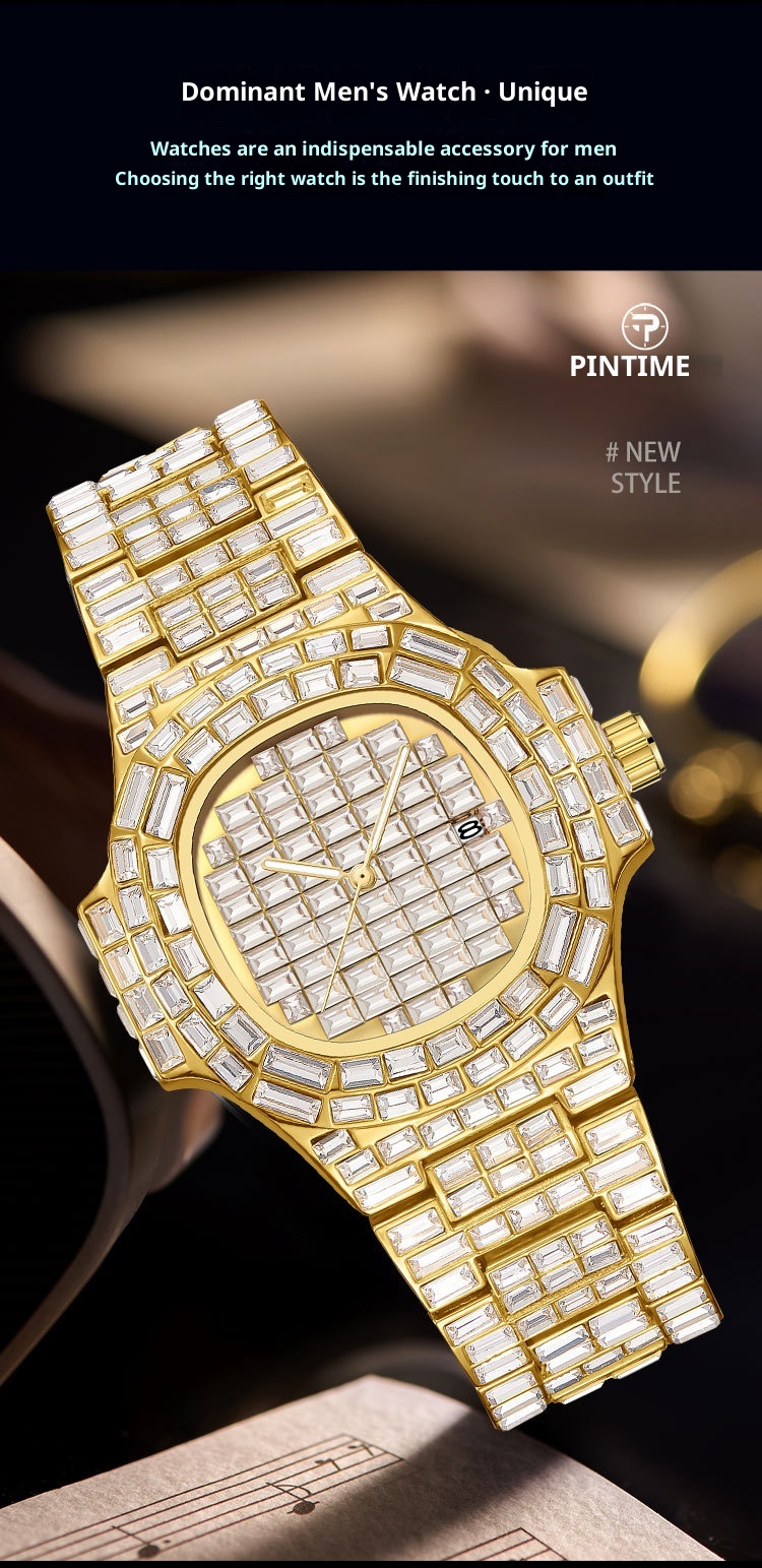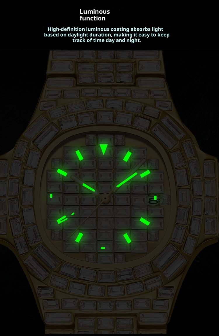 Full Square Diamond Casual Trend Waterproof Calendar Quartz Watch