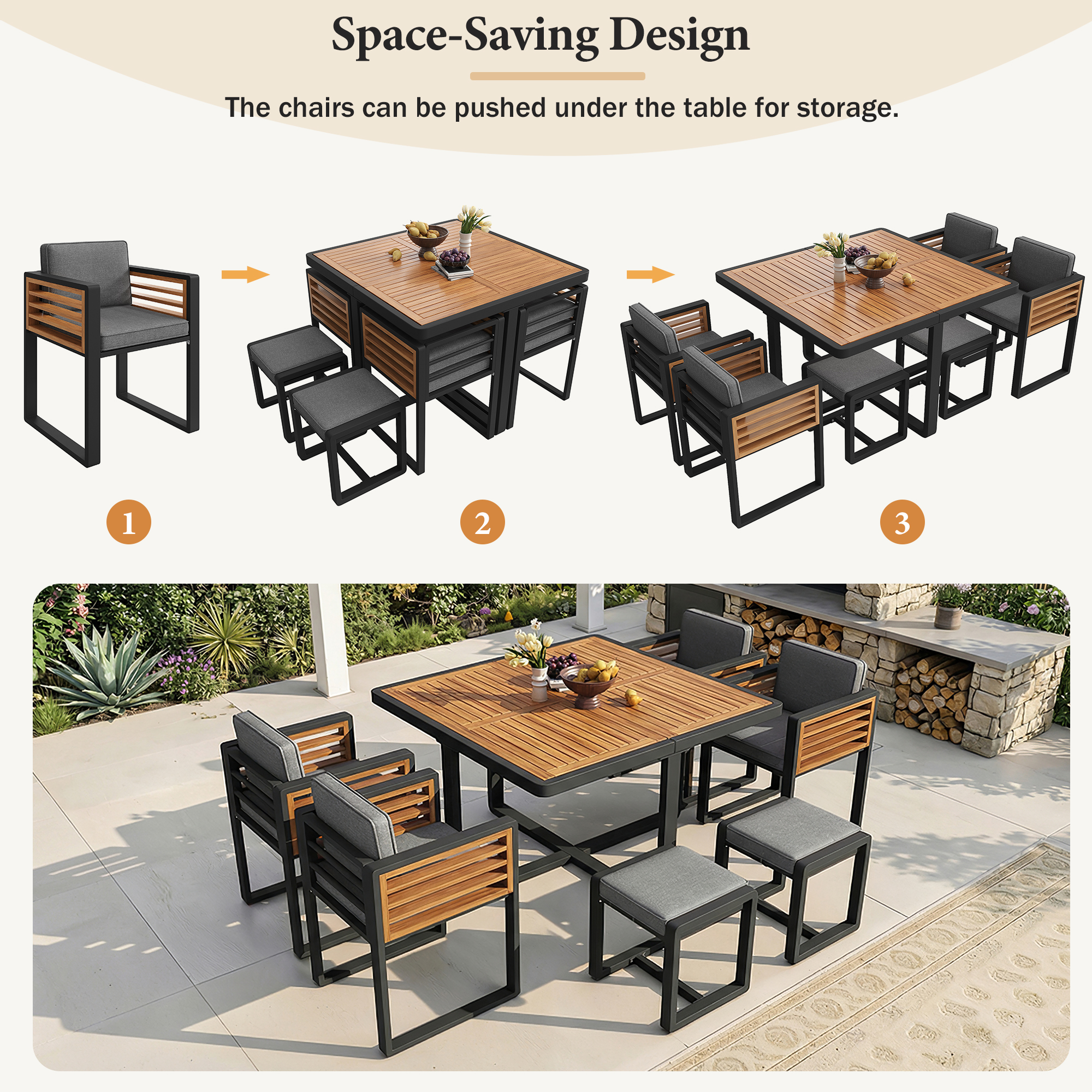 - Practical space-saving design:This outdoor table and chairs set features a clever space-saving design: the chairs can be stacked or pushed under the table, making storage ideal for balconies or small gardens. Perfect for German households with limited space - everything stays neat and tidy.