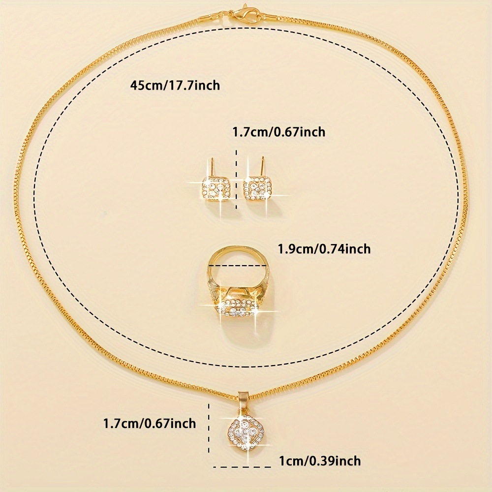 Light Luxury Diamond All-match Necklace Ring Three-piece Earrings Set