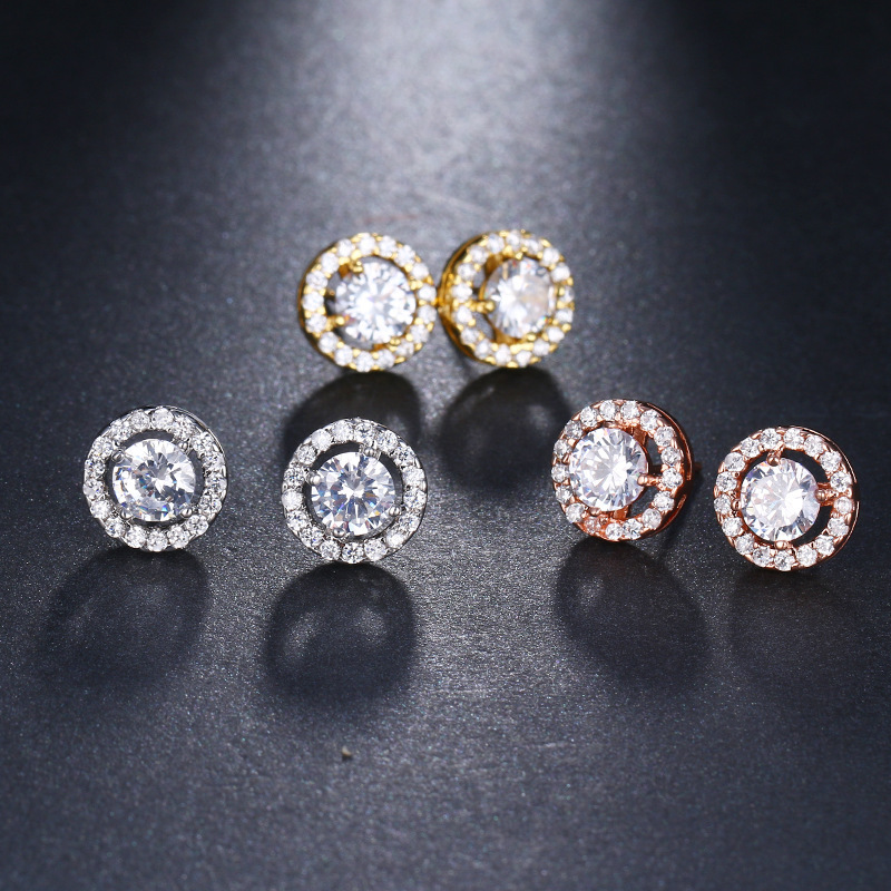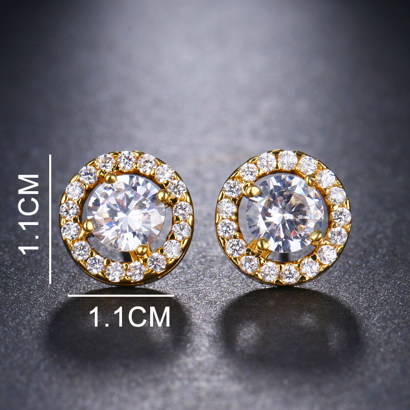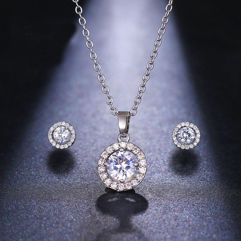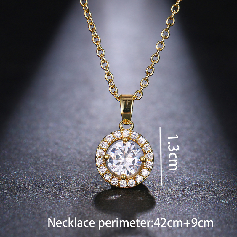 Manifold Simple Round Zircon Inlaid Clavicle Chain Necklace Earrings Two-piece Set