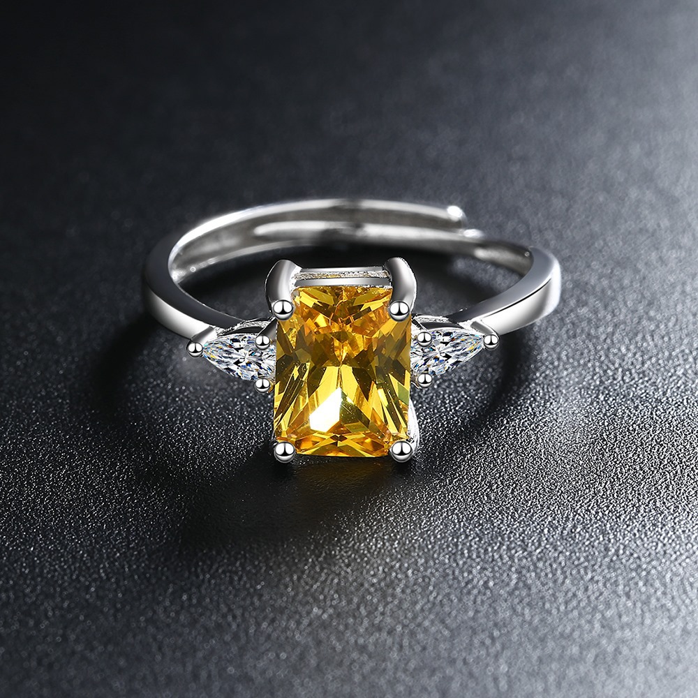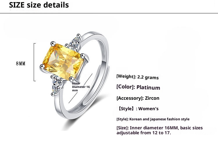 Ring Women's Simple Rectangular Yellow Diamond Zircon Opening Ring Diamond