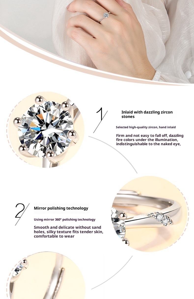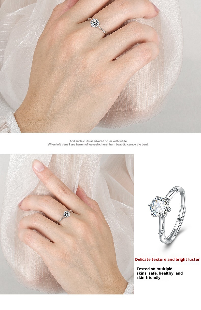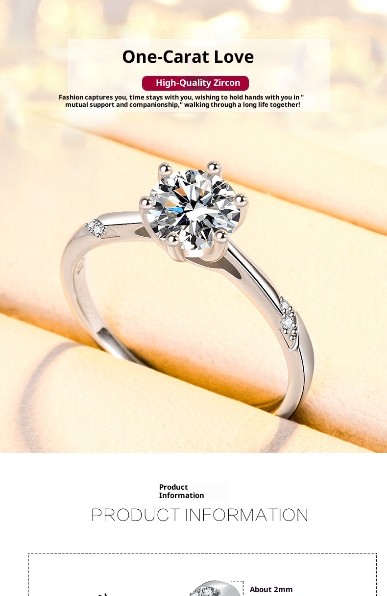S925 Sterling Silver Diamond-studded Ring 1 Karat Women's Simple