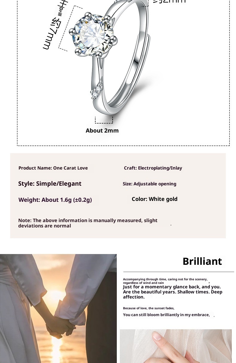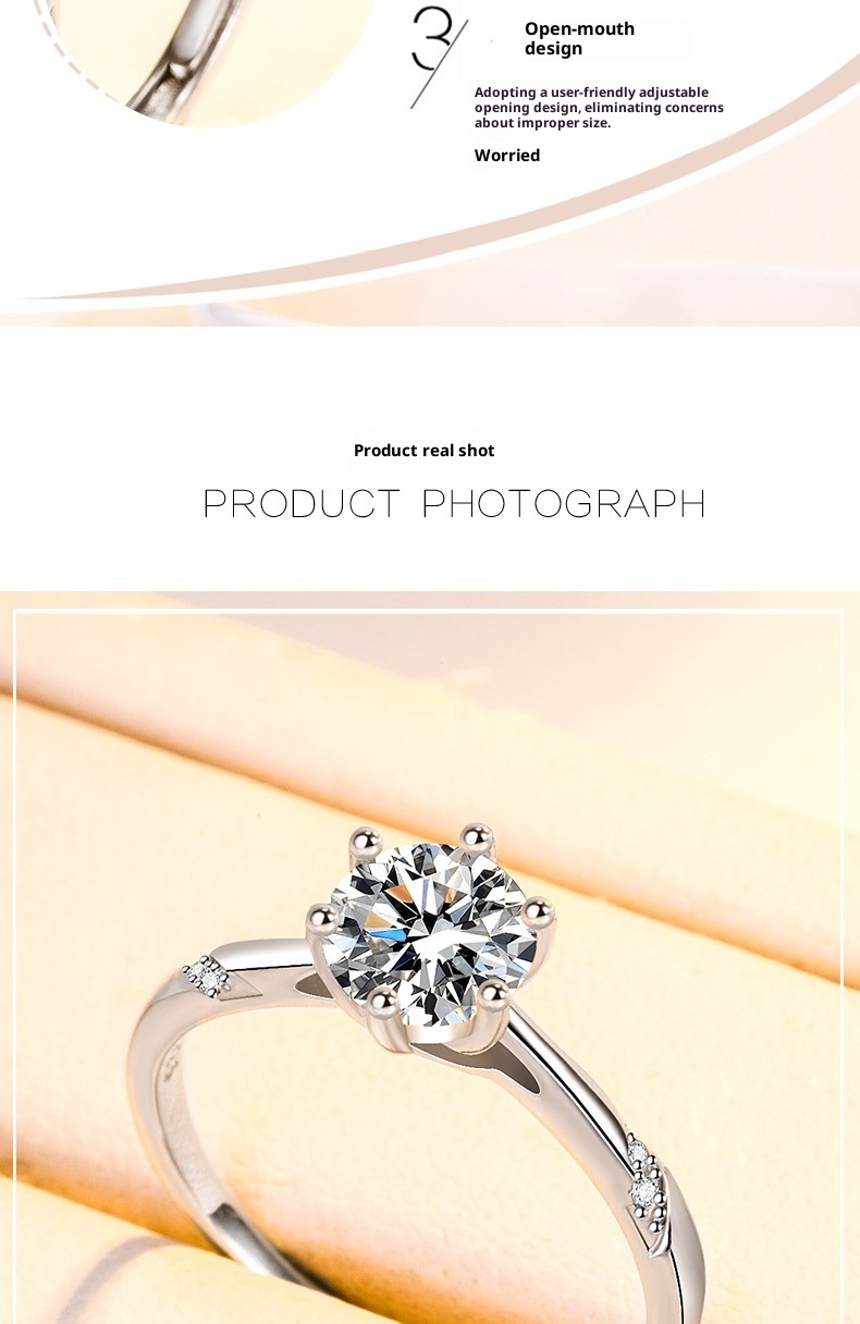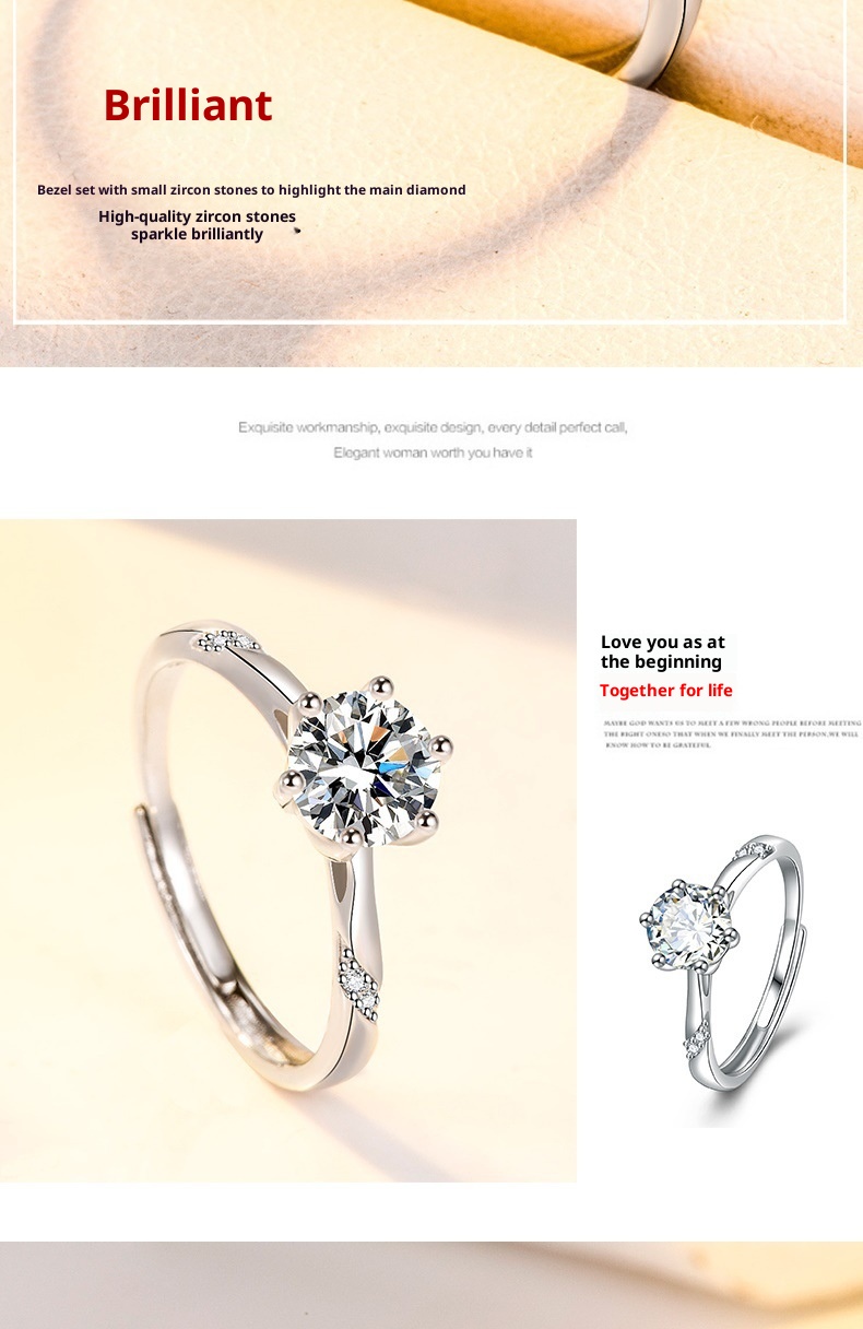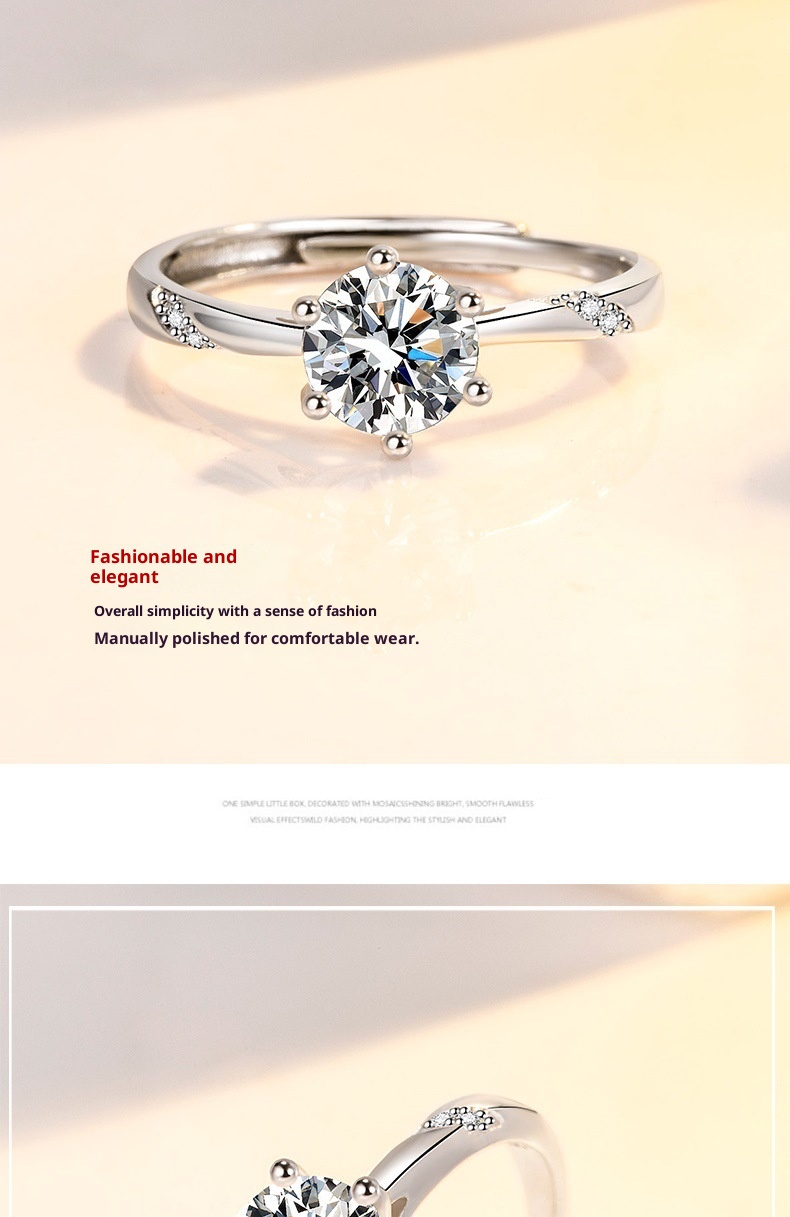 S925 Sterling Silver Diamond-studded Ring 1 Karat Women's Simple