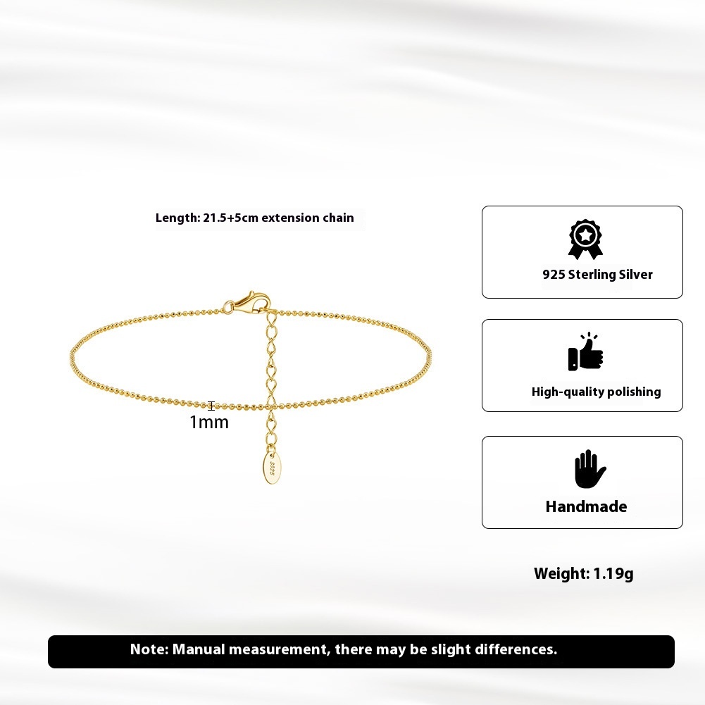 S925 Sterling Silver Round Beads Anklet Female Beach Foot Ornaments